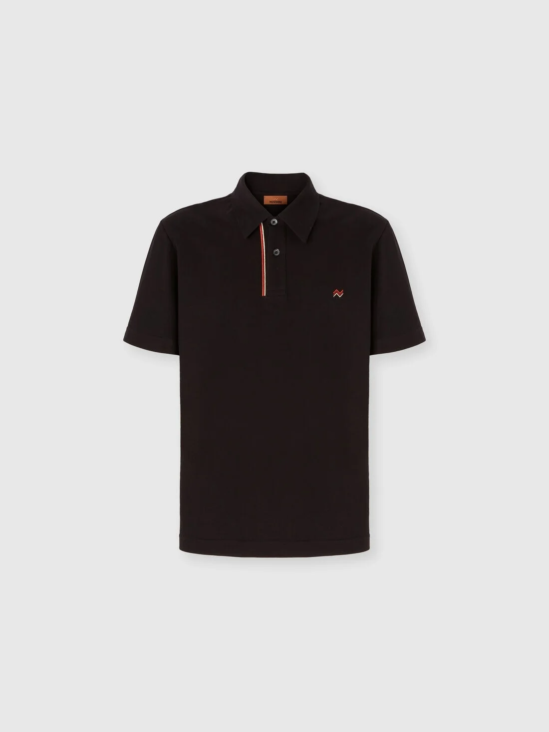 Solid color cotton piqué polo shirt with zigzag embroidery and contrasting detail
