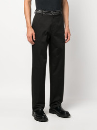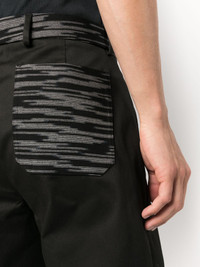 straight-leg chino trousers Highlights - Black - Wool blend - Stripe detailing - Belt loops - Contrasting rear pocket - Straight leg - Pressed crease - Concealed fly and button fastening - Two side slash pockets - Rear patch pocket - The item you receive may differ slightly from the item photographed. this is due to the artisanal nature with which all missoni products are constructed. Made in Italy Composition Cotton 97%, Wool 55%, Viscose 45%, Spandex/Elastane 3% SIZE & FIT Model measurements Height 6 ft 1 in(1.85 m) Bust/Chest 35.82 in(91 cm) Hips 37.79 in(96 cm) Waist 29.13 in(74 cm) FittingInformation Designed for a straight-leg, allowing for an unrestricted and comfortable fit over the leg Made from a midweight stretch fabric, this piece offers elasticity and flexibility when worn This piece fits true to size – take your usual size Washing instructions Hand Wash