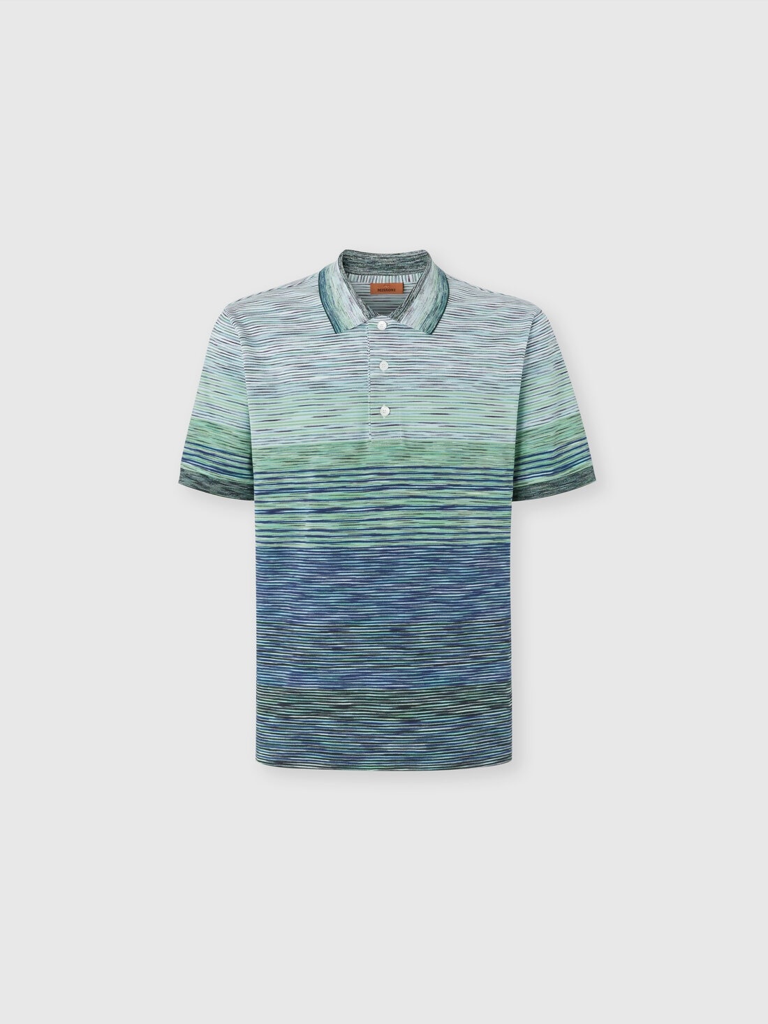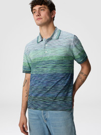 This slub cotton pique polo shirt stands out for its gradient effect that gives depth to the garment. The short sleeves and breathable fabric make it a classic with a contemporary design, where the essence of comfort meets attention to detail. MORE DETAILS - Cotton blend crewneck sweater - Gradient chevron workmanship - Contrasting profiles Composition: EXTERNAL:100%Cotton Care instructions: Ironing maximum temperature 110°C - without steam ; Wash max 30°C - Very mild process ; Dry cleaning in tetrachloroethene ; Do not tumble dry ; Dry flat ; Do not bleach Made in: Romania Product ID US25S20GBJ0014SM9KU