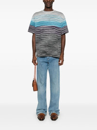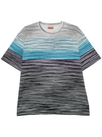 logo-rubberised striped T-shirt Highlights - Blue/multicolour - Cotton - Rubberised logo detail - Horizontal stripe pattern - Slip-on style - Jersey texture - Crew neck - Short sleeves - Straight hem - The item you receive may differ slightly from the item photographed. this is due to the artisanal nature with which all missoni products are constructed. Made in Italy Composition Cotton 100% SIZE & FIT Model measurements Height 6 ft 2 in(1.87 m) Bust/Chest 35.03 in(89 cm) Hips 34.64 in(88 cm) Waist 25.98 in(66 cm) FittingInformation Designed to be unstructured, offering a loose fit throughout Made from a midweight non-stretch fabric, this piece offers minimal elasticity when worn