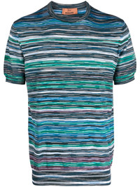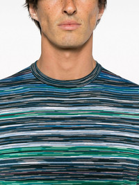 striped cotton t-shirt Highlights - Blue - Multicolour - Cotton - Multi-way stripe pattern - Round neck - Short sleeves - Straight hem - The item you receive may differ slightly from the item photographed. this is due to the artisanal nature with which all missoni products are constructed. Made in Italy Composition Cotton 100% SIZE & FIT Model measurements Height 6 ft 2 in(1.89 m) Bust/Chest 37.79 in(96 cm) Hips 37 in(94 cm) Waist 29.92 in(76 cm) FittingInformation Designed for a slim fit, offering a comfortable fit that sits just away from the body Made from a midweight non-stretch fabric, this piece offers minimal elasticity when worn This piece fits true to size – take your usual size