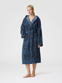 Azul, the cotton terry bathrobe presented by MissoniHome, features a reinterpretation of the classic chevron pattern. The distinctive lines of the chevron are revisited and remixed, creating an intriguing and contemporary visual effect. Equipped with a waist belt, hood and patch pockets, the garment combines comfort and style in one luxurious solution for the daily wellness routine. MORE DETAILS - Cotton terry bathrobe - Chevron pattern - Waist belt - Hood - Patch pockets Composition: EXTERNAL:100%Cotton Care instructions: Ironing maximum temperature 150°C ; Do not dry clean ; Tumble drying at lower temperature ; Wash max 40°C ; Do not bleach Made in: Portugal Product ID 1D3AC99713150