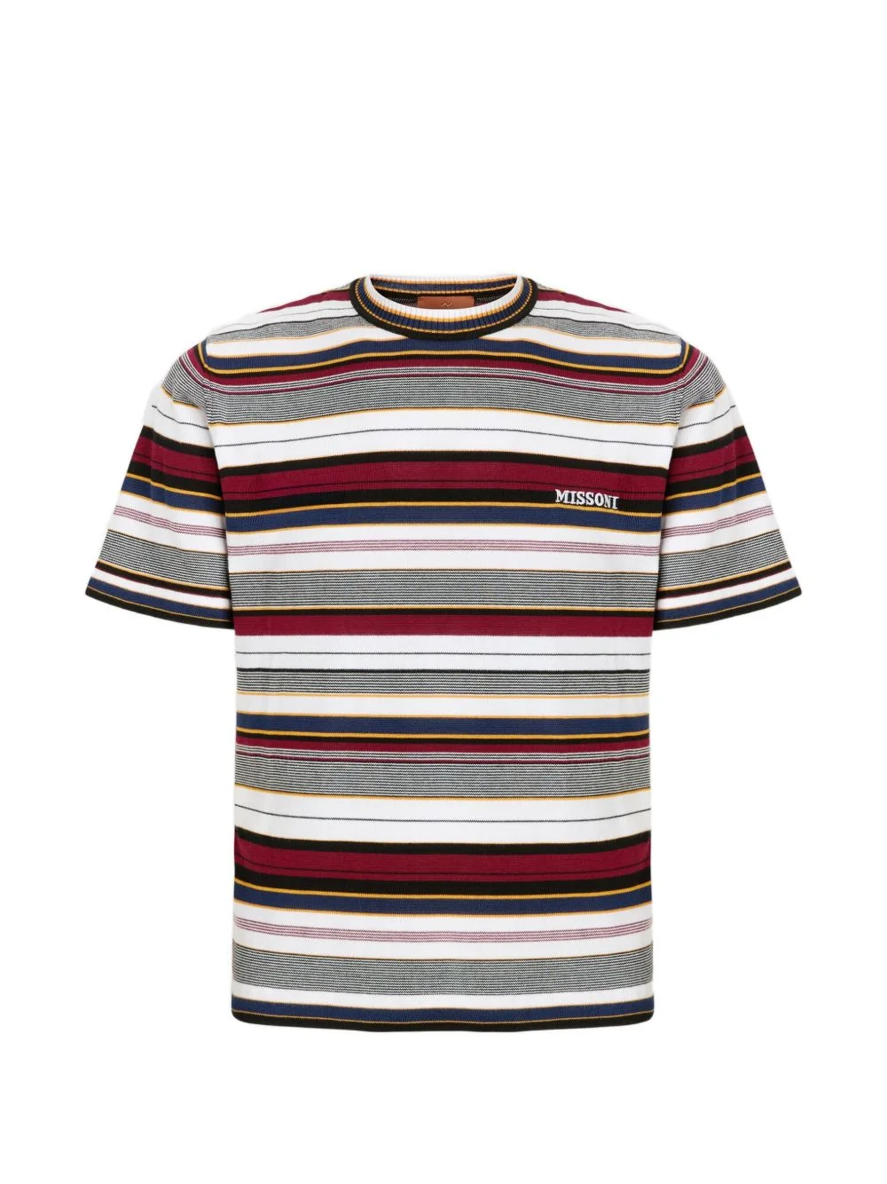 striped T-shirt Highlights - Red and multicolor - Striped - Round neck - Short sleeves - Ribbed trim - The item you receive may differ slightly from the item photographed. this is due to the artisanal nature with which all missoni products are constructed. Imported Composition Fabric 100% Washing instructions Read Manufacturer Guidelines