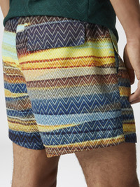 With a gradient zigzag print that evokes the changing colors of the sea, these boxer shorts combine vibrancy and elegance. Every detail of the pattern is designed to add a sense of movement and depth, transforming a sporty piece into a signature element of the summer wardrobe. MORE DETAILS - Swim shorts - Iconic tonal zigzag pattern Composition: EXTERNAL:100%Polyester; LINING : 100%Polyester Care instructions: Wash max 30°C - Mild process ; Do not tumble dry ; Do not dry clean ; Do not iron ; Do not bleach Made in: Tunisia Product ID US25SP00BW00VUSM9LU