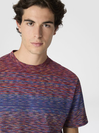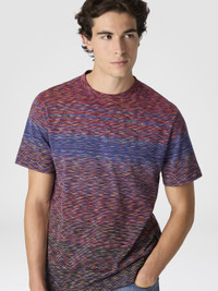 Men's regular fit short-sleeve T-shirt, made of cotton jersey with a slubbed gradient motif. A piece with dynamic and contemporary character, combining simplicity and attention to detail in perfect Missoni style. MORE DETAILS - T-shirt short sleeve - Cotton jersey - Faded slub pattern - 100% cotton Composition: EXTERNAL:100%Cotton Care instructions: Ironing maximum temperature 110°C - without steam ; Wash max 30°C - Very mild process ; Dry cleaning in tetrachloroethene ; Dry flat ; Do not tumble dry ; Do not bleach Made in: Romania Product ID US25WL03BJ00E5SM9R8