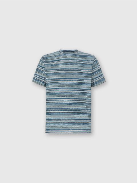 A celebration of Missoni’s style and craftsmanship: this men’s short-sleeve T-shirt combines the relaxed elegance of a regular fit with the sophistication of slubbed striped jersey, enriched by the unmistakable zigzag motif made with jacquard workmanship. Made of 100% cotton, it is an iconic and versatile piece that merges comfort and visual identity in perfect Missoni style. MORE DETAILS - T-shirt short sleeve - Regular fit - 100% cotton - Jacquard knit - Slub striped zigzag pattern Composition: EXTERNAL:100%Cotton Care instructions: Wash max 30°C - Mild process ; Ironing maximum temperature 110°C - without steam ; Dry cleaning in tetrachloroethene ; Do not tumble dry ; Do not bleach Made in: Romania Product ID US25WL04BJ00OKS417H