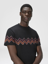 Essential yet highly distinctive, this men’s short-sleeve T-shirt in 100% cotton jersey best expresses Missoni’s iconic aesthetic. The clean lines of the solid color piece are enhanced by a large intarsia chevron insert, made with slubbed workmanship that gives depth and movement to the motif. A distinctive detail that transforms an everyday item into a statement of authentic style. MORE DETAILS - T-shirt short sleeve - Regular fit - 100% cotton - Cotton jersey - Maxi chevron slub intarsia Composition: EXTERNAL:100%Cotton Care instructions: Ironing maximum temperature 110°C - without steam ; Wash max 30°C - Mild process ; Dry cleaning in tetrachloroethene ; Do not tumble dry ; Do not bleach Made in: Romania Product ID US25WL04BJ00ONS91PD