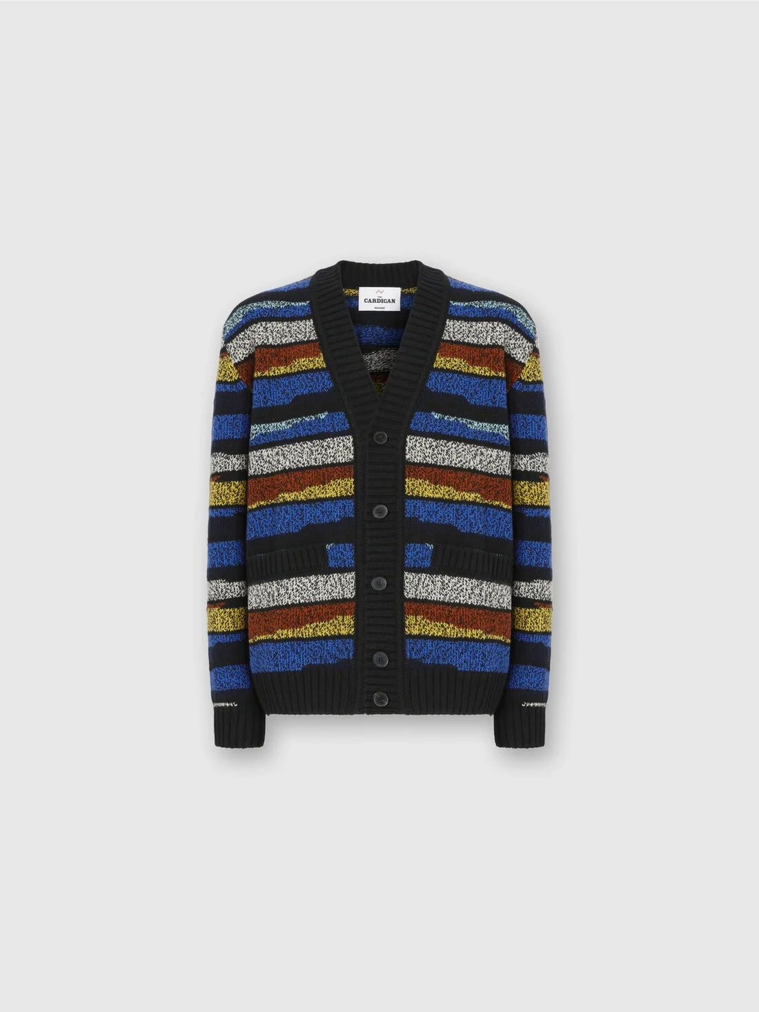 This men’s button-up cardigan in 100% wool stands out for its striped intarsia with a distinctive pattern that adds rhythm and personality to a classic silhouette. A warm and refined garment, perfect for adding a graphic and sophisticated touch to the everyday wardrobe. MORE DETAILS - Cardigan with buttons - Striped intarsia - 100% wool Composition: EXTERNAL:100%Wool Care instructions: Ironing maximum temperature 110°C - without steam ; Hand wash ; Dry cleaning in tetrachloroethene ; Dry flat ; Do not tumble dry ; Do not bleach Made in: Italy Product ID US25WM0JBK01D8SM9S3