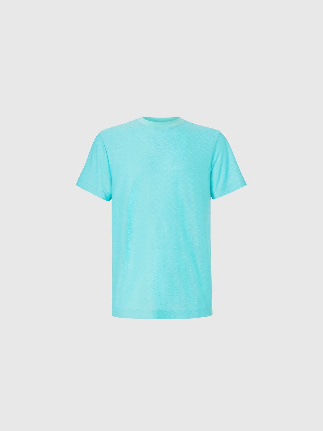 The tone-on-tone zig zag cotton jersey crewneck T-shirt stands out for its subtle but evident texture. The zigzag pattern, characteristic of the maison, gives movement to the garment, while the lightweight fabric wraps naturally, defining a sober yet refined aesthetic. MORE DETAILS - Classic cut polo shirt - Cotton jersey - Tonal zigzag pattern Composition: EXTERNAL:100%Cotton Care instructions: Ironing maximum temperature 110°C - without steam ; Wash max 30°C - Very mild process ; Dry cleaning in tetrachloroethene ; Dry flat ; Do not tumble dry ; Do not bleach Made in: Romania Product ID US25SL09BJ00LJS72J2