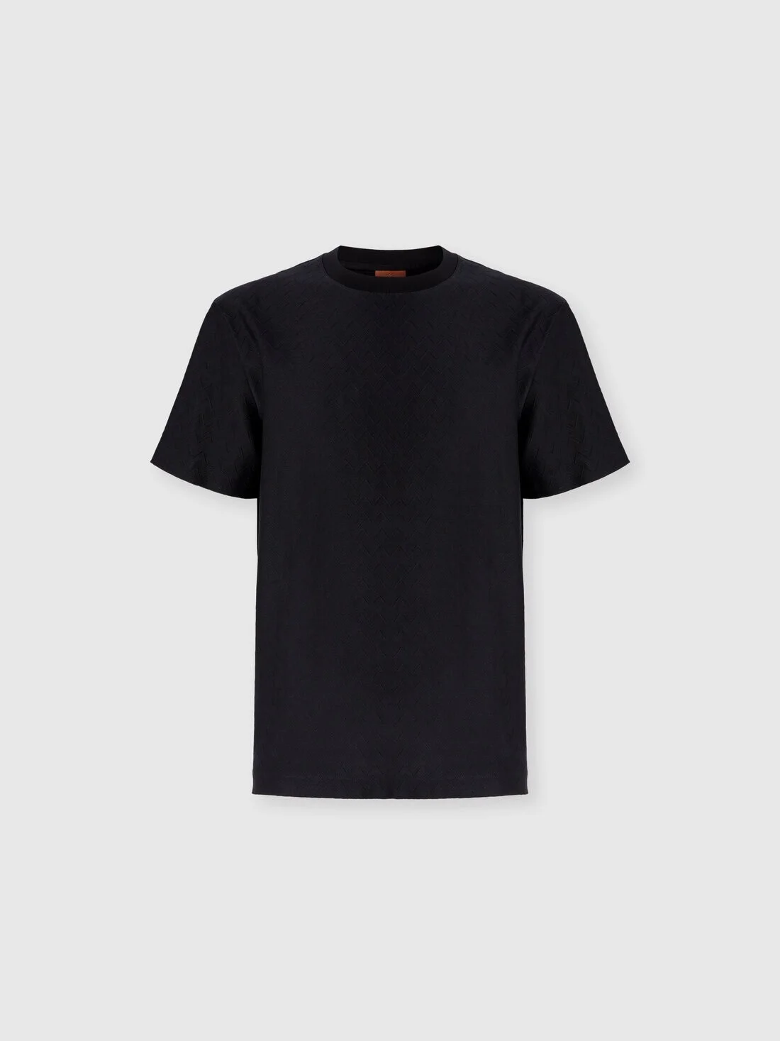 Tone-on-tone zig zag cotton jersey crewneck T-shirt