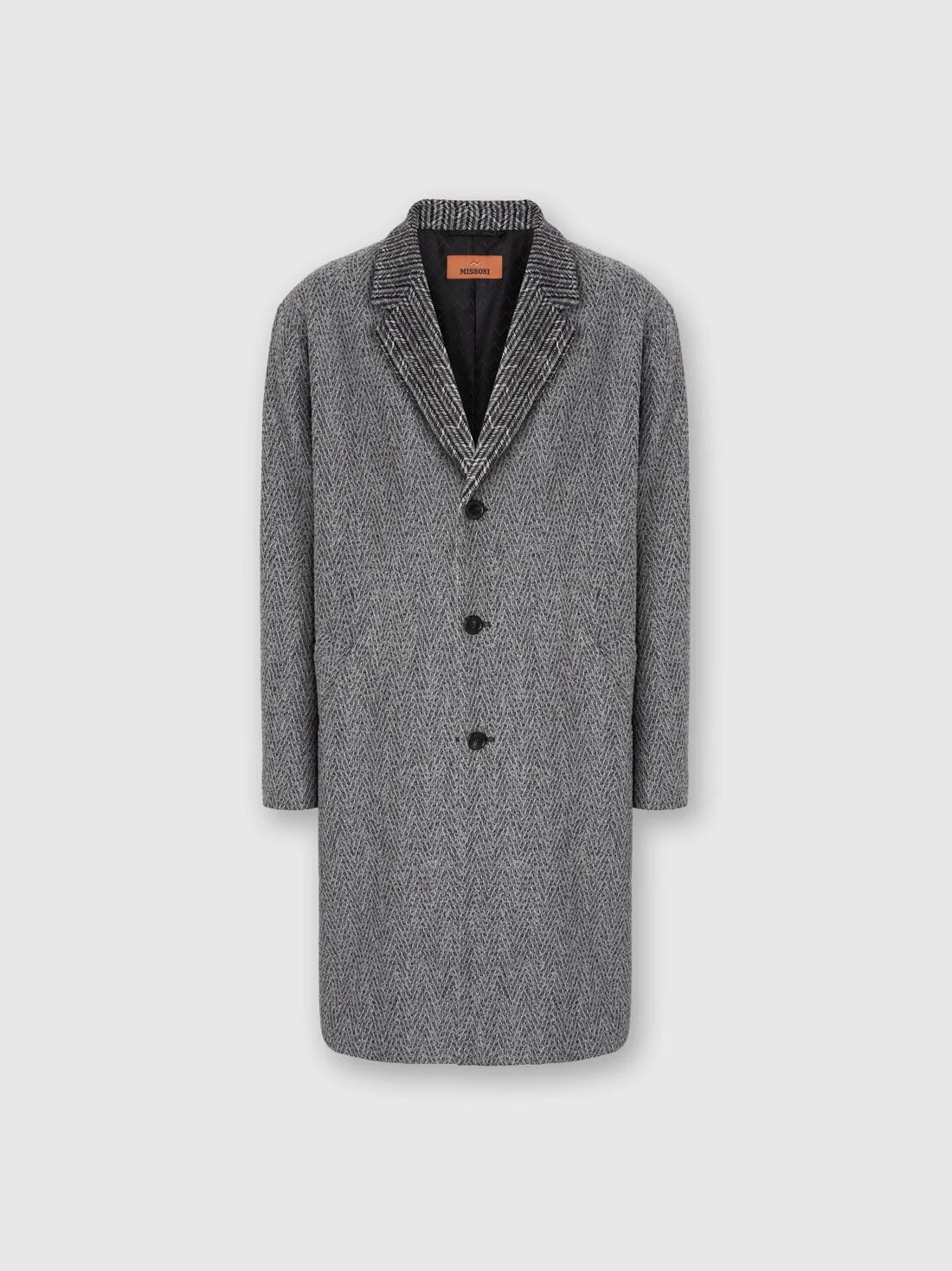 The craftsmanship and distinctive style of the Missoni maison take shape in this men’s wool coat, featuring an elegant chevron pattern. The detail made on a Caperdoni loom highlights the quality of the workmanship, giving the piece a refined and authentic imprint. MORE DETAILS - Coat - Chevron knit - Detail with Caperdoni technique - Wool felt Composition: EXTERNAL:38%Cotton, 27%Polyester, 19%Acrylic, 12%Wool, 4%Other fibres; INSERTS:66%Wool, 25%Cotton, 7%Rayon, 2%Polyester; LINING : 55%Lyocell, 45%Rayon Care instructions: Dry cleaning in tetrachloroethene - mild process ; Ironing maximum temperature 110°C - without steam ; Do not tumble dry ; Do not wash ; Do not bleach Made in: Italy Product ID US25WC0IBW00Y8S91Q2
