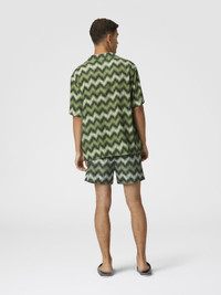 This viscose bowling shirt features a disturbed frequency zig zag print, creating a modern and irreverent look. The lightweight fabric and dynamic design make this garment ideal for those who love to wear iconic garments with a contemporary twist. MORE DETAILS - Swim shorts - Zig zag print - Striped pattern - Degrade Composition: EXTERNAL:100%Rayon Care instructions: Hand wash ; Dry cleaning in tetrachloroethene - mild process ; Ironing maximum temperature 110°C - without steam ; Do not tumble dry ; Do not bleach Made in: Morocco Product ID US25SJ0BBW00W8S614G