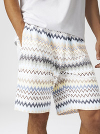The laggera cotton knit with raschel knit and zigzag pattern gives immediate recognition to the Bermuda shorts with drawstring waist. To wear the Missoni style even on the most informal and sporty occasions. MORE DETAILS - Bermuda shorts with drawstring - Zig zag cotton sweater - Raschel processing Composition: EXTERNAL:100%Cotton; INTERNAL REINFORCEMENT:100%Polyester Care instructions: Hand wash ; Dry cleaning in tetrachloroethene - mild process ; Do not tumble dry ; Dry flat ; Cool hand wash ; Do not iron ; Steam iron only ; Do not bleach Made in: Italy Product ID US24WI0ABR00XESM9ER