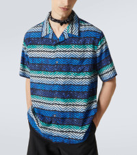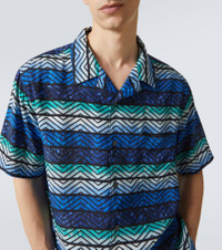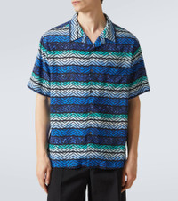 Missoni's iconic Zigzag pattern was first introduced in the 1950s and is now a symbol of Italian luxury. The classic design is updated with stripes running through it and printed all over this breezy bowling shirt. Product Details - Material: 100% viscose - Care instructions: hand wash - Made in Morocco - Designer color name: Blue Tones - Item color: blue - Closure: buttoned front - Pockets: angled chest pocket - Item number: P00982789 Size & Fit - True to size - Without pleats in the back - Designed for a loose fit - Non-stretchy fabric - Falls to the hip - Height of model is 189cm-74.5" and wears a size L
