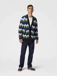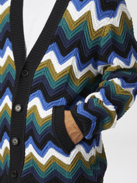 A cardigan that combines craftsmanship and visual creativity. The chevron weave is intertwined with the multicolor zigzag pattern, enhanced by the contrasting profiles. Tonal buttons and pockets add a touch of functionality, while maintaining a bold yet refined aesthetic. MORE DETAILS - Short-sleeved crew neck T-shirt - Slub cotton processing - Degrade motif Composition: EXTERNAL:58%Cotton, 42%Polyamide Care instructions: Ironing maximum temperature 110°C - without steam ; Hand wash ; Dry cleaning in tetrachloroethene ; Do not tumble dry ; Dry flat ; Do not bleach Made in: Italy Product ID US25SM0EBK01ARS72KT