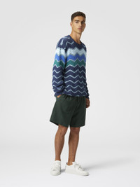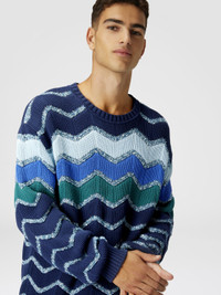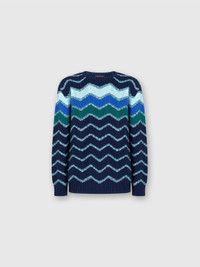 Crew-neck pullover with macro zigzag and mélange details