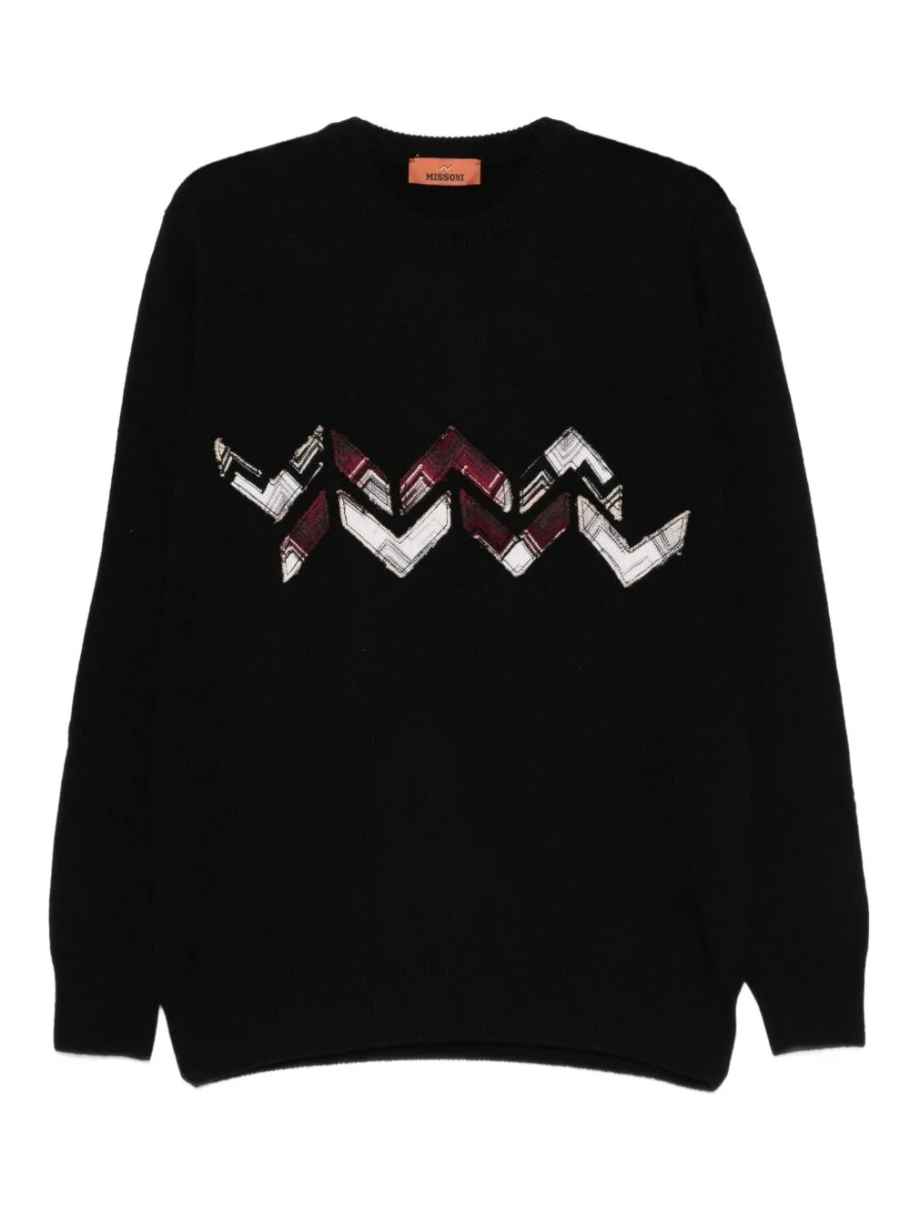 zigzag-detail wool sweater Highlights - Black - Zigzag detail - Long sleeves - Round neck - Ribbed cuffs and hem - The item you receive may differ slightly from the item photographed. this is due to the artisanal nature with which all missoni products are constructed. Made in Italy Composition Wool 100% SIZE & FIT Model measurements Height 6 ft 1 in(1.85 m) Bust/Chest 35.82 in(91 cm) Hips 37.79 in(96 cm) Waist 29.13 in(74 cm) Washing instructions Read Manufacturer Guidelines