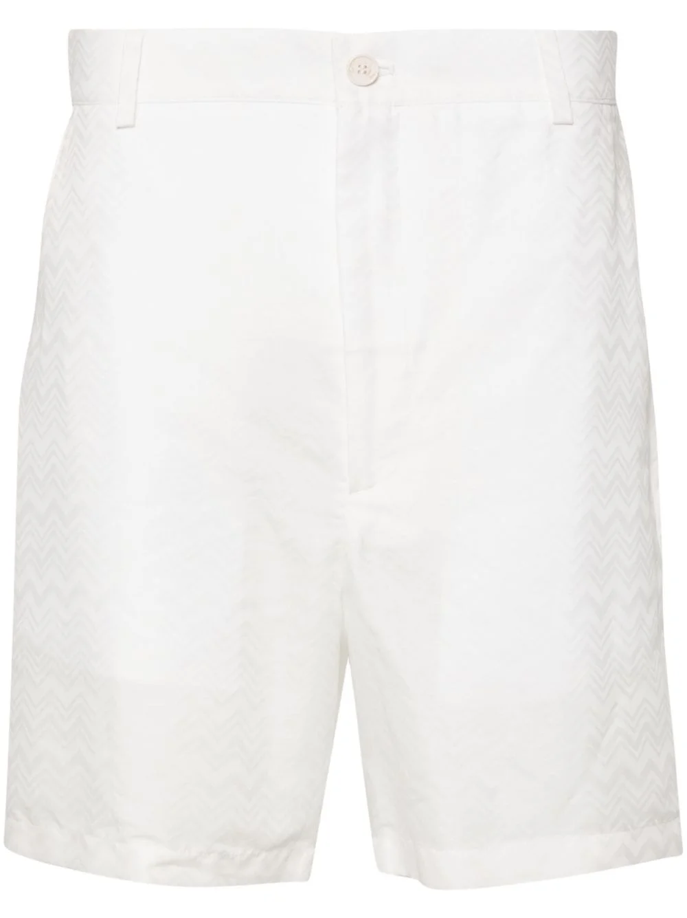 zigzag-jacquard bermuda shorts Highlights - White - Cotton-linen blend - Zigzag print - Patterned jacquard - Mid-rise - Concealed fly and button fastening - Belt loops - Two diagonal pockets to the sides - Two rear button-fastening jetted pockets - Straight hem - The item you receive may differ slightly from the item photographed. this is due to the artisanal nature with which all missoni products are constructed. Made in Italy Composition Cotton 58%, Linen/Flax 42% SIZE & FIT Model measurements Height 6 ft 2 in(1.87 m) Bust/Chest 36.41 in(92.5 cm) Hips 37 in(94 cm) Waist 29.52 in(75 cm) FittingInformation Designed for relaxed fit, offering a comfortable loose fit over the leg Made from a midweight non-stretch fabric This piece fits true to size – take your usual size Washing instructions Machine Wash