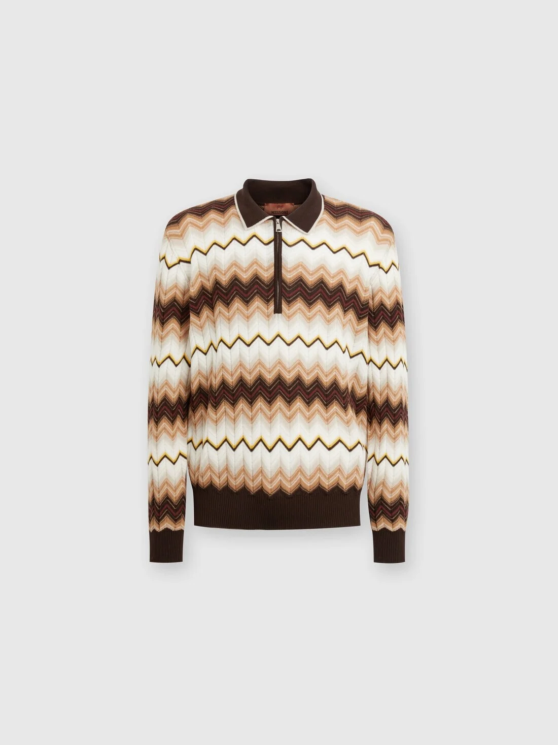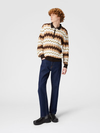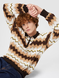 Focus on the collar, with contrasting piping and zip closure, for the long-sleeved polo shirt. Crafted from wool and cotton knit, it is embellished with a gradient zigzag pattern. MORE DETAILS - Long-sleeved polo shirt - Wool & Cotton Sweater - Gradient zigzag pattern - Zip closure Composition: EXTERNAL:55%Cotton, 45%Wool Care instructions: Hand wash ; Ironing maximum temperature 110°C - without steam ; Dry cleaning in tetrachloroethene - mild process ; Do not tumble dry ; Dry flat ; Iron with a cloth between ; Do not bleach Made in: Romania Product ID US24W20ABK039VSM9H3