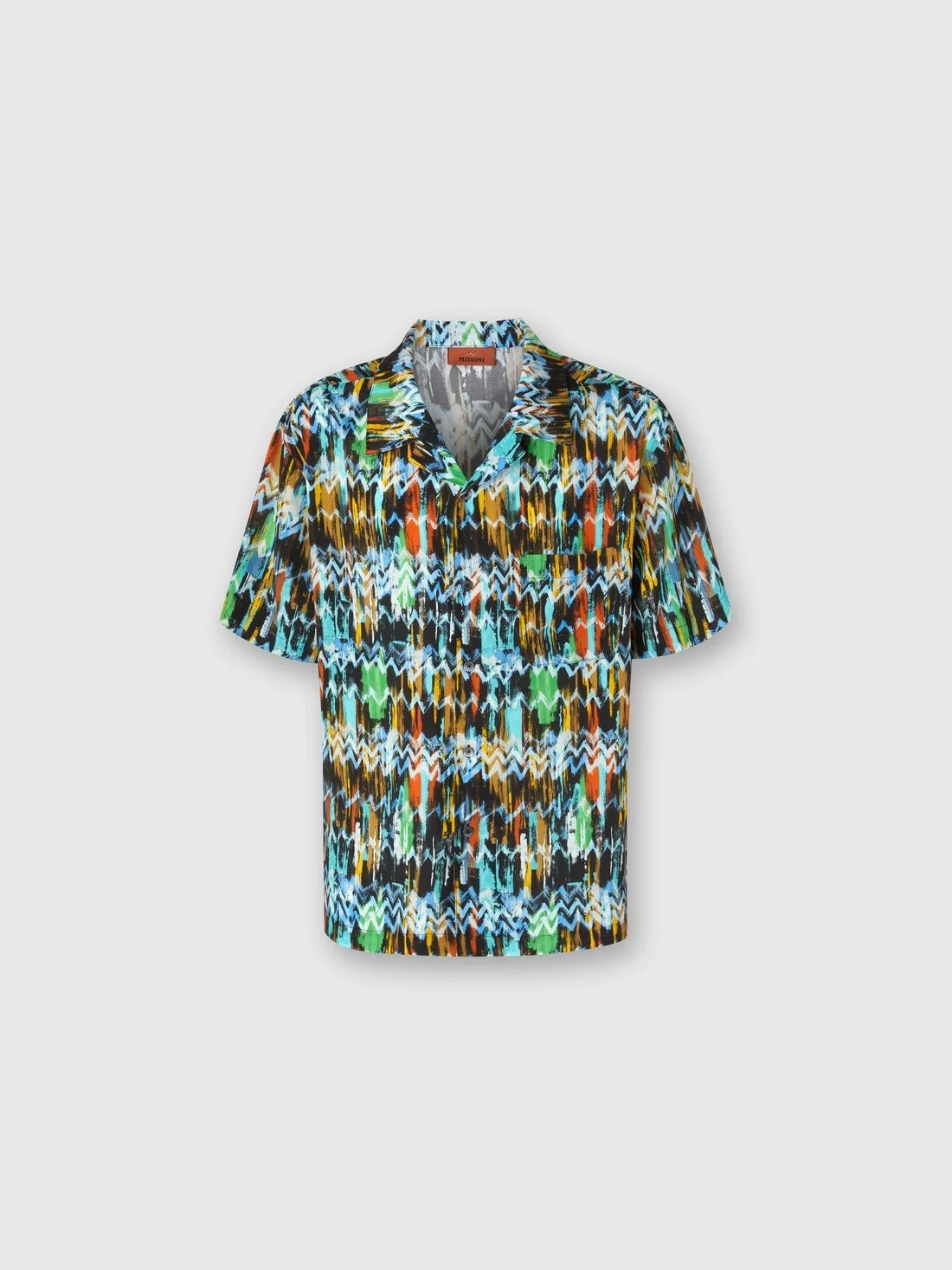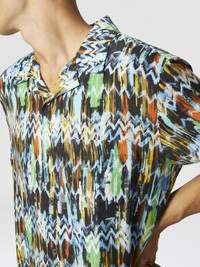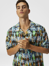 The brushed zigzag print of this viscose bowling shirt gives the garment an artistic and lively look. The softness of viscose is combined with the bold design, creating a perfect balance between elegance and creative spirit. MORE DETAILS - Crew neck T-shirt - Disturbed Frequency Machining - Airbrush effect dubbing - Iconic zig zag pattern Composition: EXTERNAL:100%Rayon Care instructions: Dry cleaning in tetrachloroethene - mild process ; Hand wash ; Ironing maximum temperature 110°C - without steam ; Do not tumble dry ; Do not bleach Made in: Morocco Product ID US25SJ0BBW00VFSM9LV