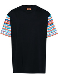 zigzag-sleeves cotton T-shirt Highlights - Navy blue/multicolour - Cotton - Zigzag print at the sleeves - Crew neck - Short sleeves - Straight hem - The item you receive may differ slightly from the item photographed. this is due to the artisanal nature with which all missoni products are constructed. Imported Composition Cotton 100% SIZE & FIT Model measurements Height 6 ft 2 in(1.87 m) Bust/Chest 36.22 in(92 cm) Hips 37 in(94 cm) Waist 27.95 in(71 cm) Washing instructions Hand Wash