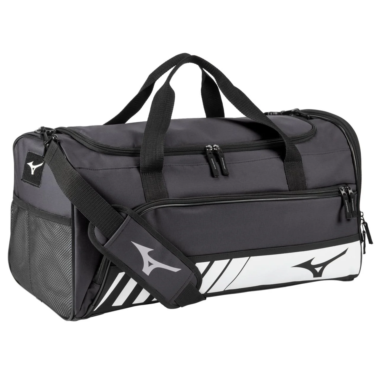 Perfect as either a personal or team travel bag with many storage compartments for convenient organization. Aerate your shoes and keep them separate from your other gear in the Ventilated Footwear Storage Compartment. Also features a handy compartment to store your valuables and other smaller items. To provide even more storage, the MUS Utility System on the front provides custom storage options, either with straps, carabiners, or the Utility Pouch. - Ventilated Footwear Storage Compartment: Separates shoes from rest of bag to protect and aerate your footwear. - Multiple Storage Compartments: Plenty of added storage options to make packing easy. - Fleece-lined, Front Zip Valuables Pocket - Adjustable, Padded Shoulder Straps: Comfortable strap that easily adjusts to preference. - Water Resistant PU Coated Bottom Panel - Large Area for Embroidery: Makes adding personalization or your team's logo easy. - 300 Ripstop Polyester (PVC 23 Coated): Light weight woven fabric that uses special reinforcement for added durability. - 2 Bat Sleeves: Store up to 2 bats or use as a water bottle pouch. - Molle Attachment Straps - Molle Strap Attachment System: Allows for easy removal of the Mod Pouch and provides an additional level of customization - easily attach other accessories with molle strap-compatible attachment clips - Dimensions: 22"x11.75"x11" Volume: 46 Liters