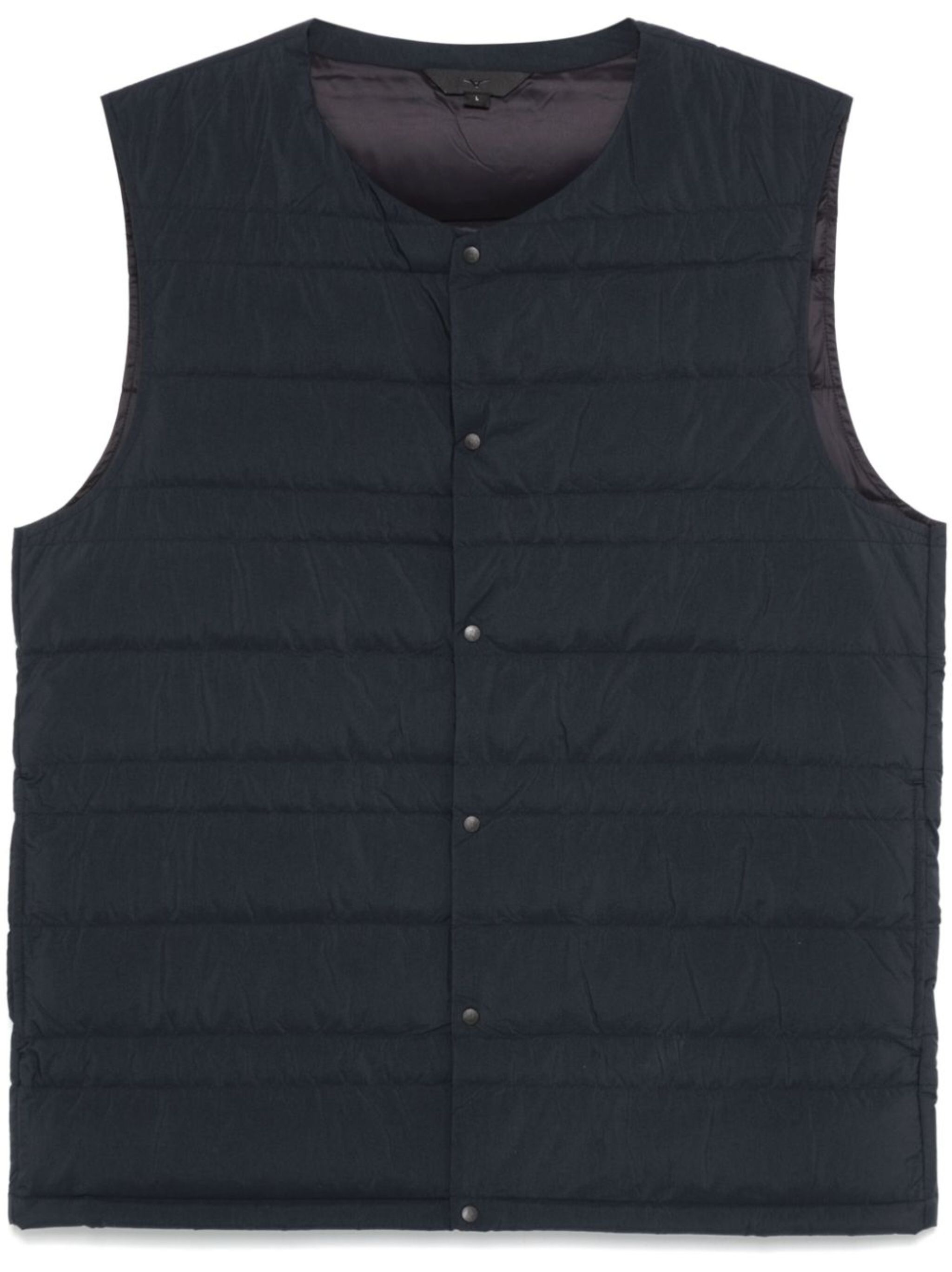 black down-feather filling padded design quilted front press-stud fastening collarless sleeveless two side slit pockets full lining straight hem Size & Fit Model Measurements: Height: 1.85 m Bust/Chest: 93.0 cm Hips: 96.0 cm Waist: 73.0 cm Model wears size L Fabric and Care Designer Style ID: B2GEB551 Designer Colour: 09 BLACK Composition: Outer: Nylon 100%; Lining: Duck down 90%, Nylon 100%, Feather 10% Washing instructions: Hand Wash