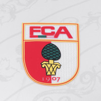 The home jersey is a White kit with a pattern embossed graphic and bold club colored band on the front of the jersey. The shirt incorporates the run bird logo on the right chest and FC Augsburg’s club crest on the left.