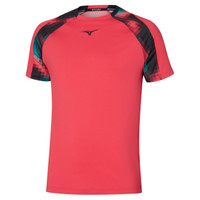 The Men's Shadow Tee is a lightweight performance tennis and pickleball t-shirt constructed from soft polyester fabric designed to stretch for ultimate comfort and maneuverability. Dry Aeroflow technology in the back panel elevates air flow for better moisture management and breathability, keeping you cool throughout the match. DYNAMOTION design ensures a proper fit while maintaining freedom of movement. Seasonal graphic print on sleeves. Regular fit. - DYNAMOTION FIT: Creates an upper that moves with your foot seamlessly. - Raglan Sleeve: For improved range of motion. - Graphic Print Design - Breathable High Performance Fabric - Dry Aeroflow: Prevents the build up of sweat film inside the garment, maintaining breathability and keeping you cool. - Lightweight - Stretch fabric for greater freedom of movement - MIZUNO RUNBIRD® logo on front