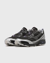 The Mizuno MXR from the Millennium Pack is a tribute to the Y2K trend. This was an era of innovation and a mindset of breaking boundaries and redefining identities through technology and digital fusion. It is also a tribute to nightlife, with strong influences from London and Berlin clubs, echoing a bygone era where dark lights and silver flow together. The MXR impresses with glossy black and silver metallic with pearlescent reflections, diamond grilles and reflective surfaces. A special highlight is provided by dreamy purple and violet-indigo tones as color accents. - Upper made of mesh and synthetic material - Soft, breathable textile lining - Foamed footbed - Foamed midsole - Rubber outsole Article number: D1GA251501 Gender: men Color: BLACK/BLACK SAND/PURPLE HAZE Material: 100% Synthetic/Textile