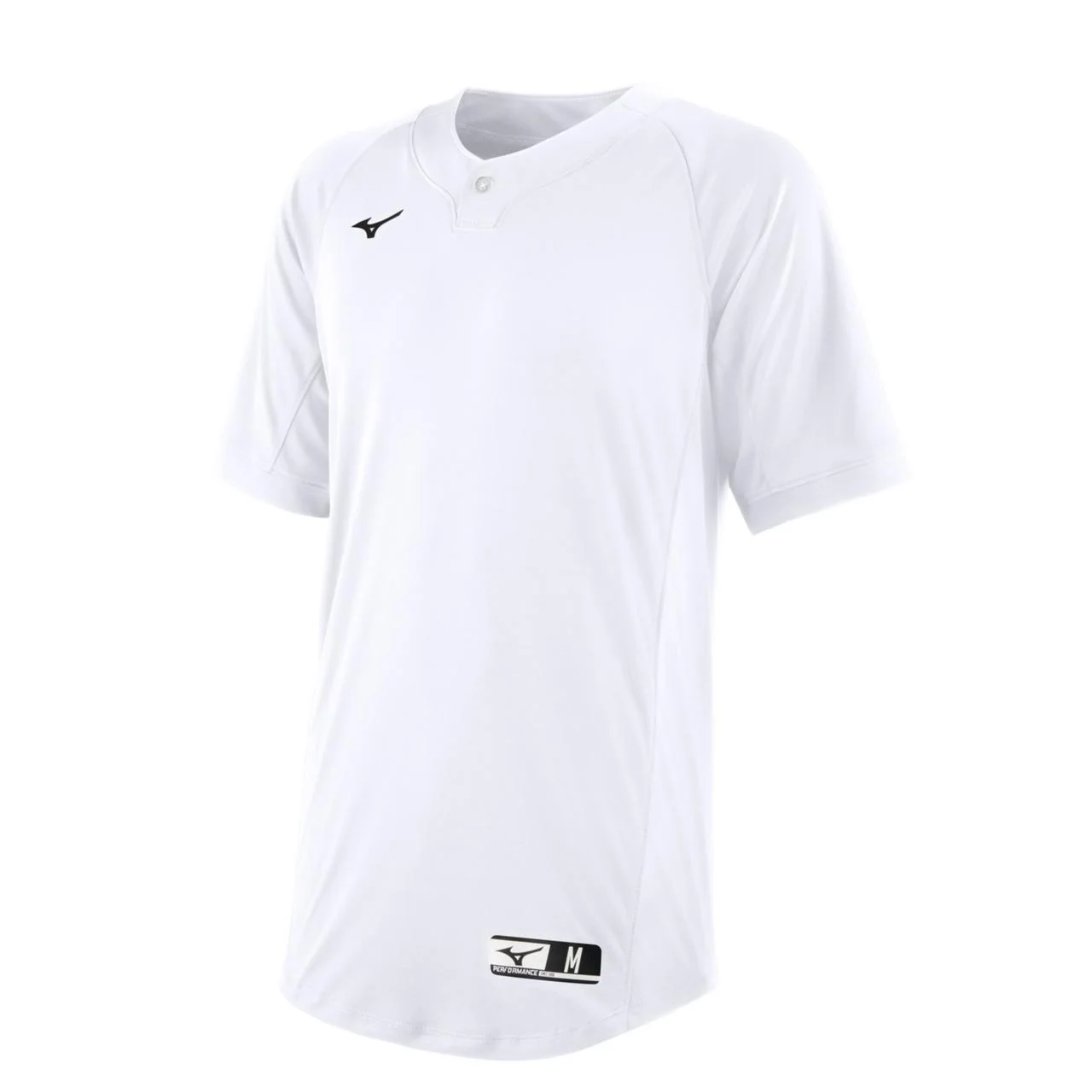 Mizuno's newest addition to the jersey line. The NXT 1 Button Baseball Jersey combines the simple design of a 1 button placket with the cost effective NXT fabric to bring your team another great jersey option. - MIZUNO DRYLITE® Moisture Management : Using a dual filament yarn construction to transport excess moisture away from the body to create a comfortable and dry body microclimate for best performance. - 1-button placket construction - Lightweight polyester mesh construction