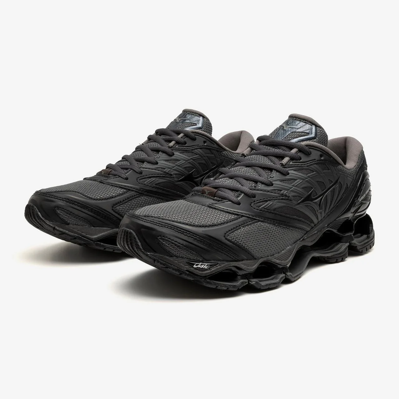 Our most iconic silhouette Wave Prophecy LS in an easy-to-wear, classic triple black colorway. Our fashion silhouettes cannot go unnoticed. With crazy sole units or injected technical details they stand for the rich history of Mizuno performance. Designed in Japan, each of those styles has unique features. They all represent the specific design heritage of a brand that have been enriching the world of footwear for decades. - Infinity Wave Plate: The next level of Wave technology with a more visible and effective construction. The ultimate Wave features unrivaled cushioning and improved durability by absorbing and dispersing the impact at foot strike.
