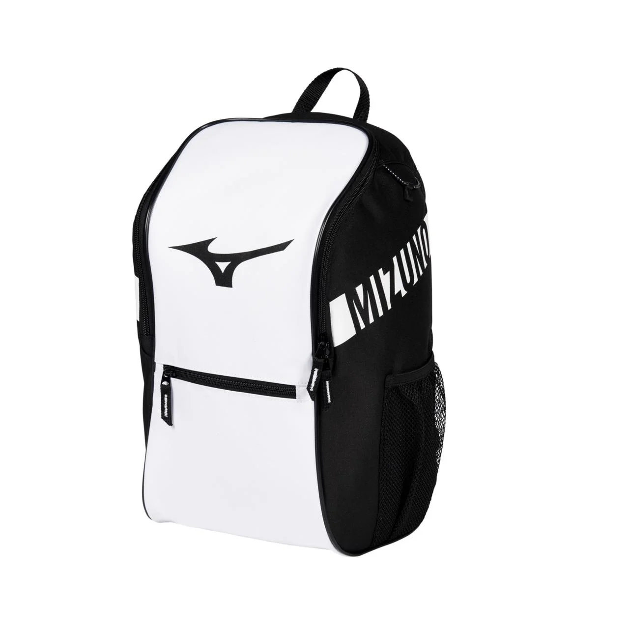 Our new Youth Future Backpack is a great bag for youth players across many different sports. It boasts features such as bungees that can store different types of gear, 2 side pockets for bats or water bottles, large internal pocket for gear storage, and an external valuables pocket. Full of intuitive features and sized just right, it's the perfect bag for promising prospects! - Large Main Compartment - Mizuno Aerostraps: For maximum comfort carrying all of your gear. - Valuables Compartment: Pocket designed to secure valuables or serve as an an organization compartment. - Bat Sleeves: Store up to 2 bats or use as a water bottle pouch. - Dimensions: 8"x12"x16" Volume: 25 Liters