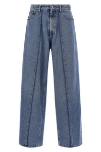 cod. SH0LA0011M30018967 '5 pockets' wide leg jeans in cotton denim with front stitching, leather back logo tag with logo print, hook and button zip closure, 5 pockets. Color: Blue Size & Fit: Oversized fit Composition: 100% cotton Made in: Italy