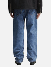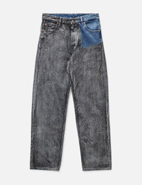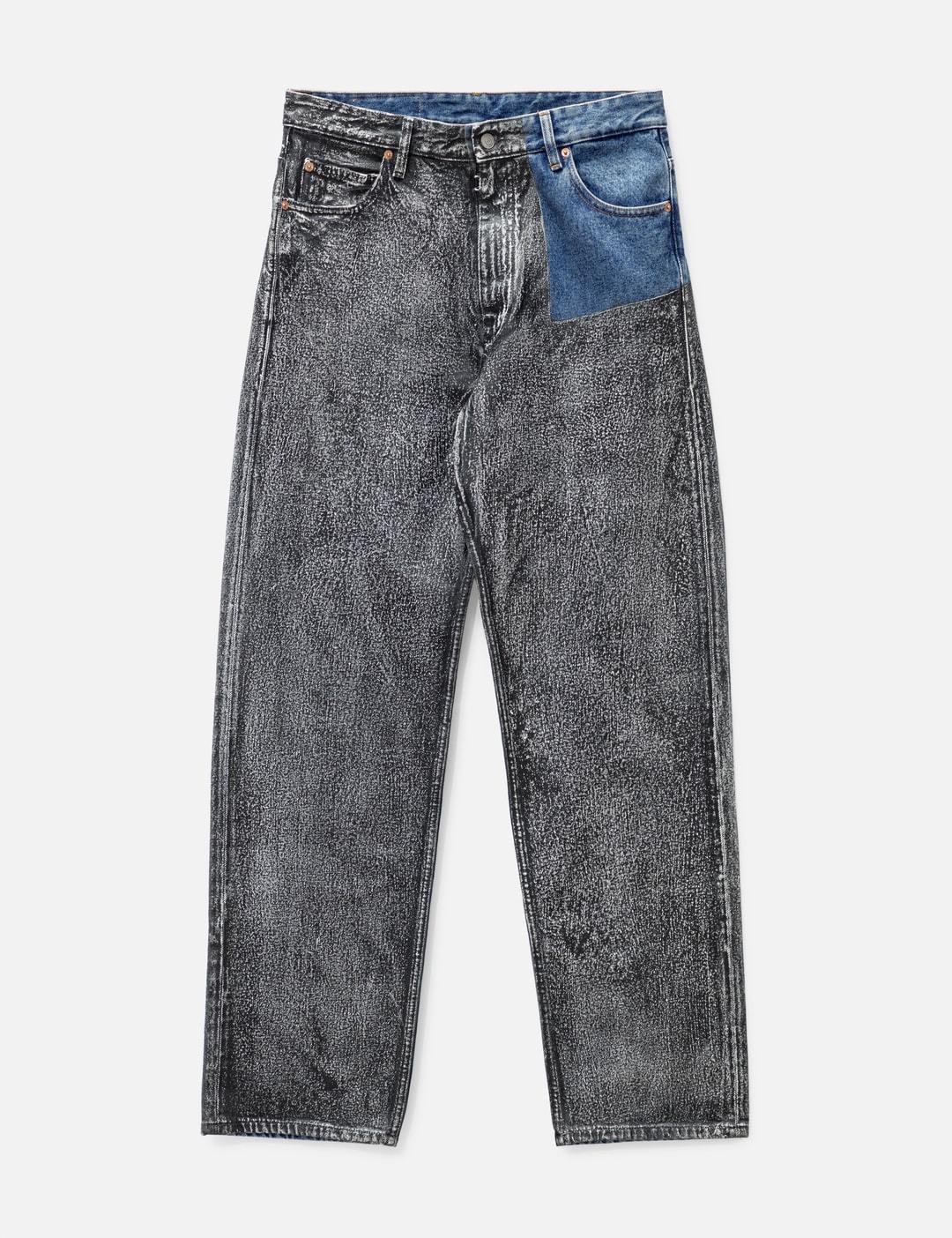 - MM6 Maison Margiela - Bi-Color Jeans - Cotton denim fabric with a paint-like treatment at front - 5 pocket style - Zip fly - Straight leg - Color: Dark Gray/Medium Indigo - Material: 100% Cotton - See more Jeans and Clothing SIZING - Model wears size 32 - Model measures: Height 187cm, Chest 36”/91cm, Waist 29”/74cm, Hip 37”/94cm
