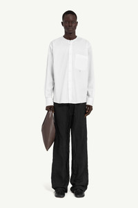 This cotton poplin shirt redefines versatility with its detachable collar, offering multiple styling options. Classic details like buttoned cuffs, a patch pocket, and side slits add a timeless touch, while the white stitch line at the back nods to MM6's deconstructive spirit. A contemporary take on a wardrobe staple. Product Details Item ID SH0DT0020M35152100 Primary fabric: 100% cotton Cotton poplin shirt Detachable collar Button closure Buttoned cuffs Patch pocket Side slits White stitch line at the back Made in Portugal