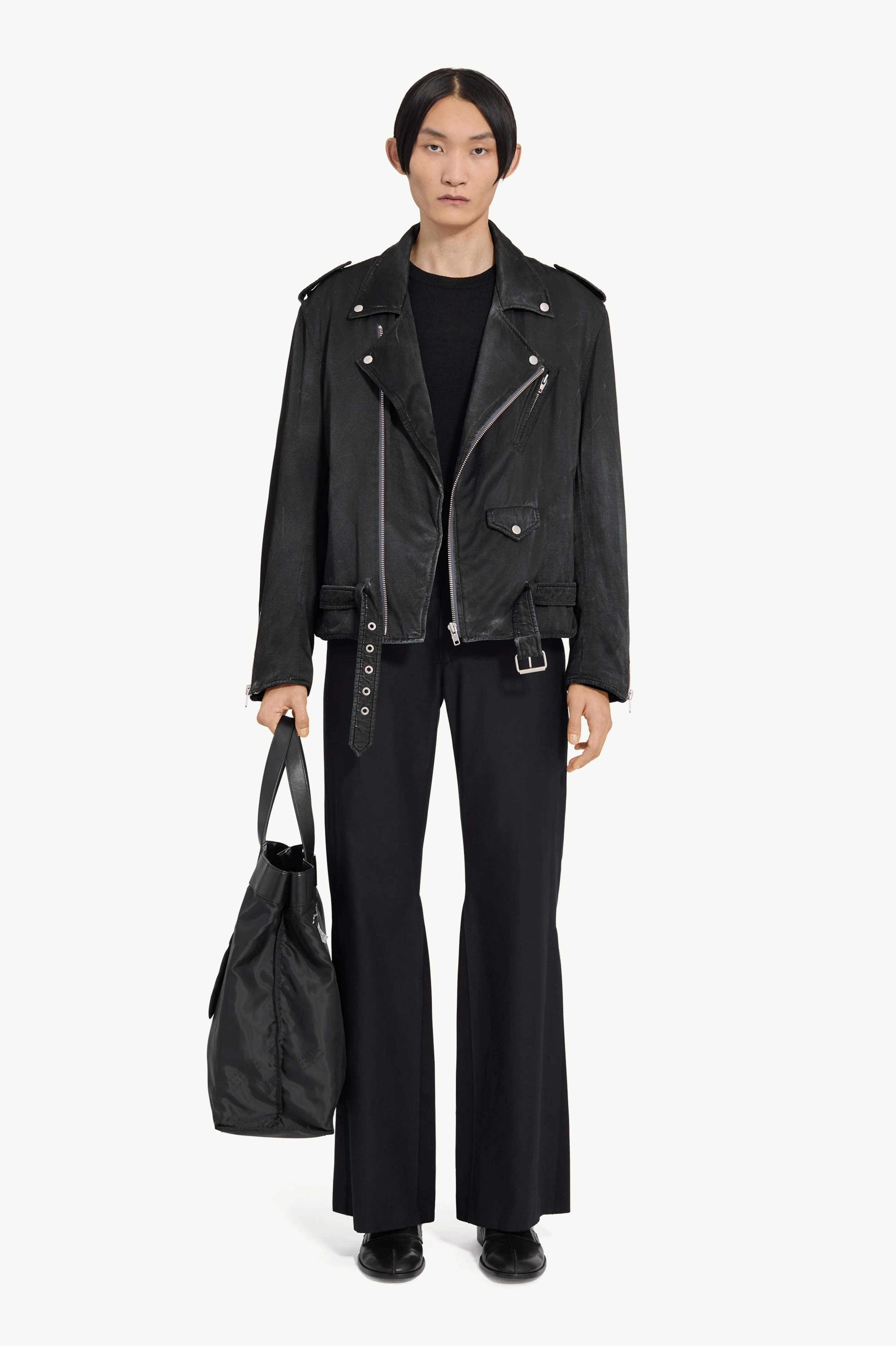 A modern take on the archetypal biker, this jacket contrasts heavy-duty detailing with a softened, broken-in finish that nods to MM6’s deconstructive approach. Zipped cuffs and multiple fastenings offer layered functionality, while the piece’s altered proportions introduce subtle disruption to an otherwise classic cut. At the back, the signature white stitch line affirms the Maison’s identity. Product Details Item ID SH0AM0066M35452899 Primary Fabric: 57% Cotton 43% Viscose-Rayon Lining: 100% Cotton Pocket Lining: 100% Cotton Lining: 100% Viscose-Rayon Padding: 100% Polyester Oversized biker jacket Offset zip closure Snap-detail lapels Zipped cuffs Buttoned epaulettes at the shoulder White stitch line at the back Made in Italy Model is 190 cm tall and wears a size 48.