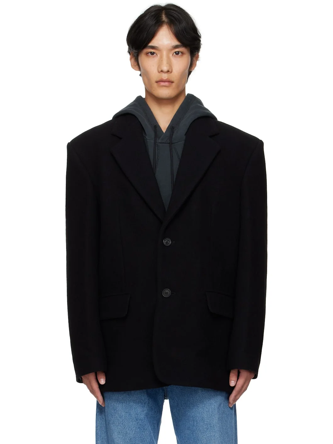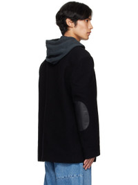 Felted wool-blend blazer. · Notched lapel · Button closure · Flap pockets at front · Grained leather elbows patches · White stitching at back collar · Welt pocket at interior · Full satin twill lining Supplier color: Black Body: 78% wool, 22% polyester. Lining 1: 100% viscose. Lining 2: 100% cotton. Made in Italy 252188M180003