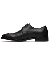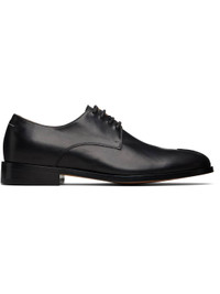 Buffed calfskin derbys. · Pinched seam at toe · Lace-up closure · Logo embossed at tongue · White stitching at heel collar · Buffed calfskin and calfskin suede lining · Stacked calfskin sole with rubber injection Supplier color: Black Calfskin. Made in Italy 252188M225001