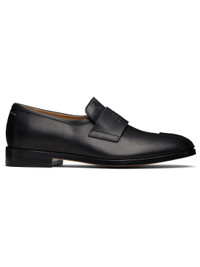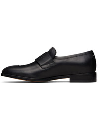 Buffed calfskin loafers. · Pinched seam at toe · Logo-embossed strap at vamp · Concealed elasticized strap at tongue · White stitching at back collar · Buffed calfskin and calfskin suede lining · Stacked calfskin sole with rubber injection · Calfskin sole Supplier color: Black Calfskin. Made in Italy 252188M231004