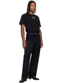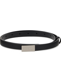 Pebble-grained calfskin belt. · Keeper loop at length · Logo plaque at post-stud fastening · Silver-tone hardware · W0.75" Supplier color: Black Calfskin. Made in Italy 252188M131002