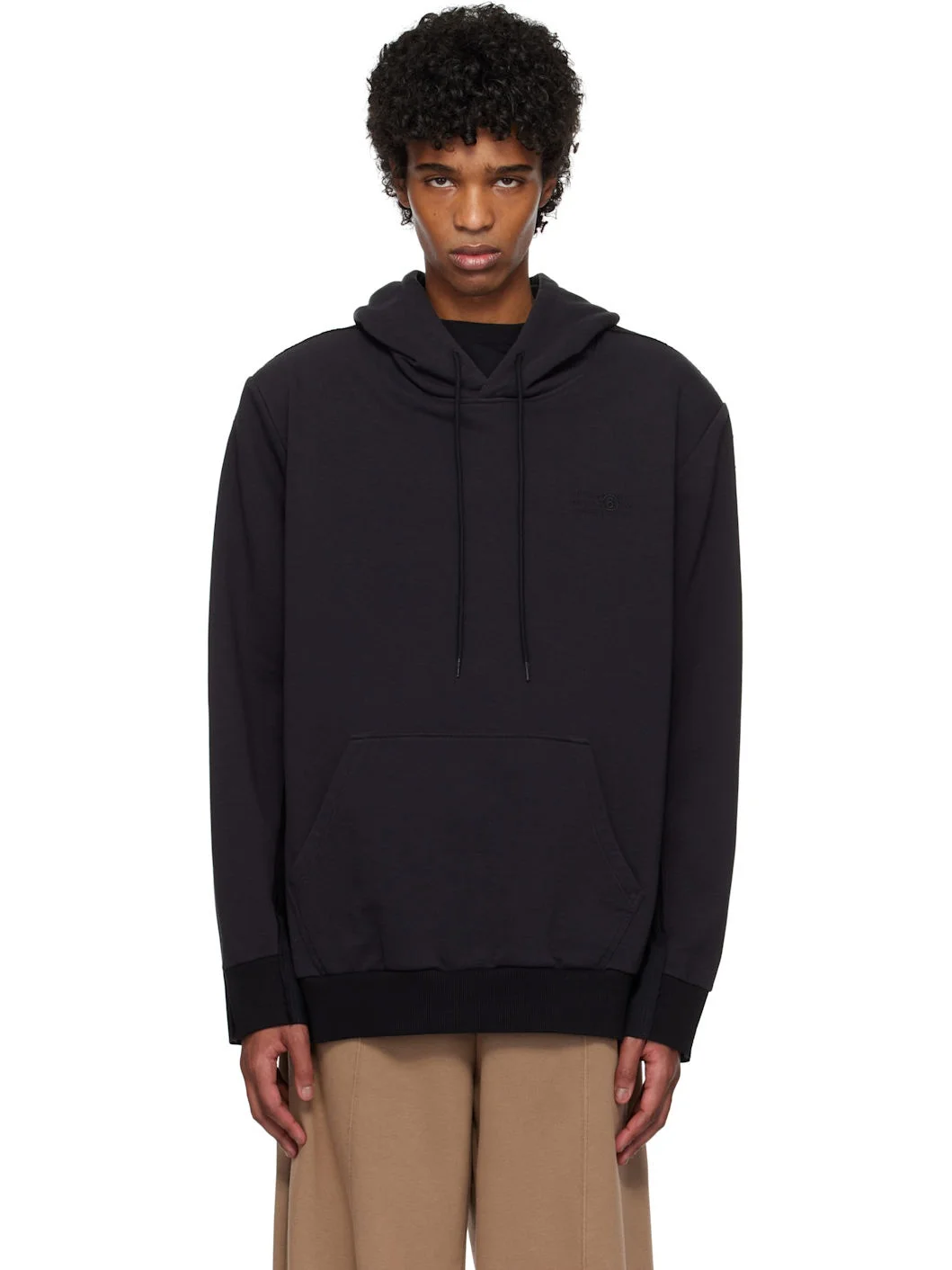 Cotton-blend French terry and virgin wool chintz hoodie. · Paneled construction · Drawstring at hood · Logo embroidered at chest · Kangaroo pocket · Partially rib-knit hem and cuffs · Padded shoulders · Four-button surgeon's cuffs · Central vent at back · White stitching at back collar Supplier color: Black Body 1: 66% cotton, 34% polyester. Body 2: 100% virgin wool. Lining 1: 100% cotton. Lining 2: 100% viscose. Made in Italy 251188M202003