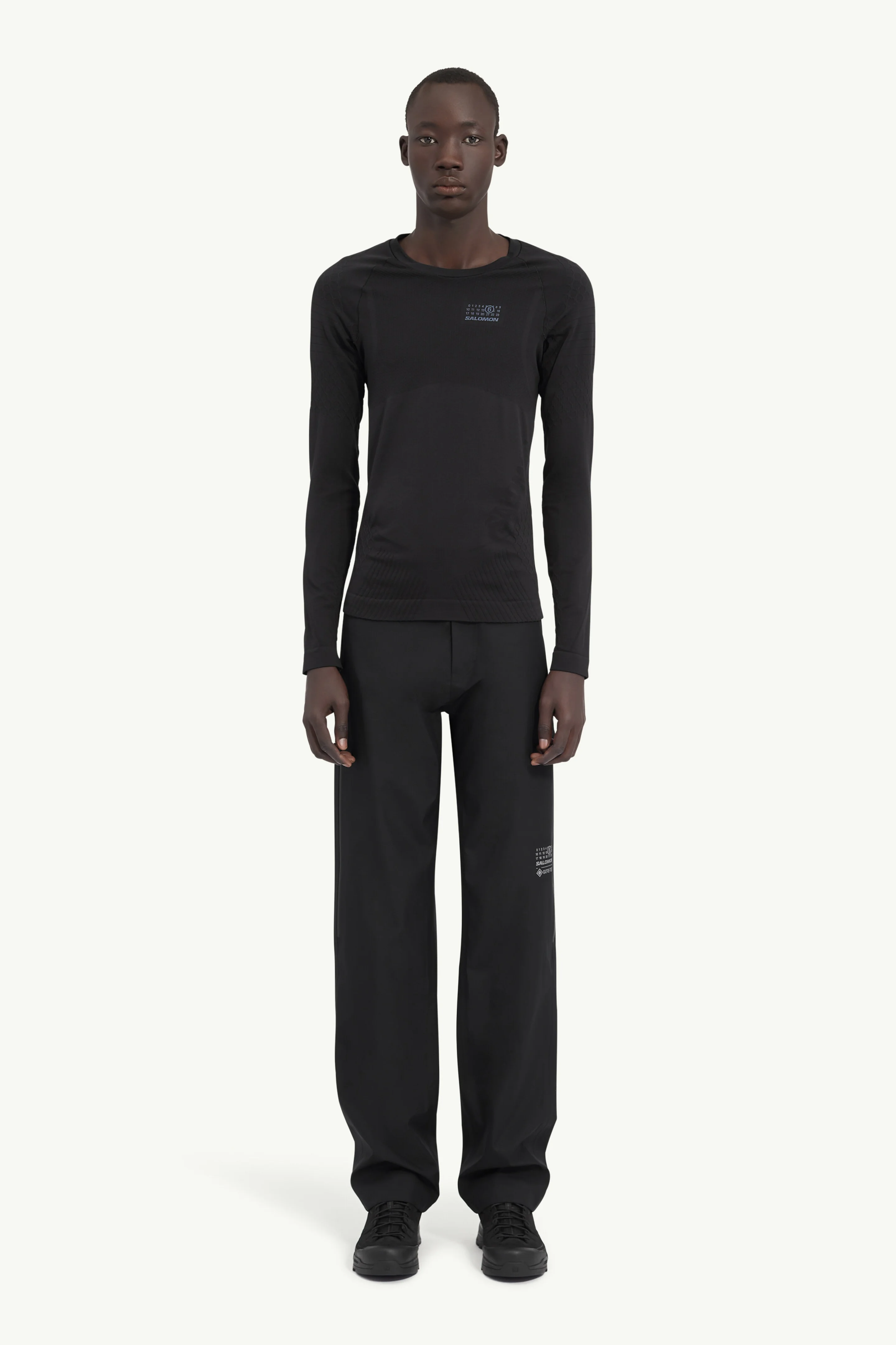 This numeric top illustrates the capsule's hybrid perspective, marrying a progressive aesthetic with performance-ready credentials. The MM6 x Salomon collaboration speaks to the brands’ shared ethos of transitional design, first seen in the Maison’s Autumn/Winter 2022 show. Drawing inspiration from the everyday, the collection is a celebration of the unsung beauty of quotidian dressing; of the eclectic blur of clothes that pass us by on our city streets. Made from comfortable jersey, the top is detailed by both the Salomon logo and the MM6 numeric signature at the front. MM6's discreet yet distinct signature, a horizontal line of white stitches, is also found on the back of the garment. Product Details Item ID SH0NH0009M20037900 Composition: 100% nylon Jersey top Salomon logo and MM6 numeric signature at the front White stitch line at the back Slim fit