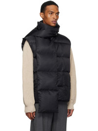 Down-filled and quilted nylon twill vest. · Integrated scarf at stand collar · Zip closure · Concealed press-stud placket · Patch pockets at front · White stitching at back collar · Zip pocket at interior · Full satin lining Supplier color: Black Fill: 90% duck down, 10% duck feather. Body: 100% polyamide. Lining: 100% polyamide. Made in Italy 252188M178000