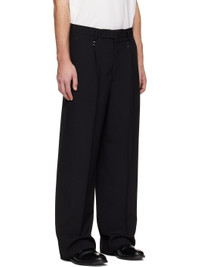 Plain-woven virgin-wool blend trousers. · Belt loops · Three-pocket styling · Zip fly · Staple hardware at front and back · Pleats at front · Creased legs · White stitching at back Supplier color: Black Body: 55% polyester, 45% virgin wool. Trim: 100% cotton. Made in Italy 261188M191007