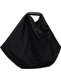 Cotton- and viscose-blend satin tote. · Draping throughout · Integrated shoulder strap · Logo-embossed calfskin trim at strap · White stitching at back face · Press-stud closure · Patch pocket at interior · Cotton twill lining · H15" x W27" x D1.5" Supplier color: Black Body: 57% cotton, 43% viscose. Trim: 100% calfskin. Lining: 100% cotton. Made in Italy 252188M172002