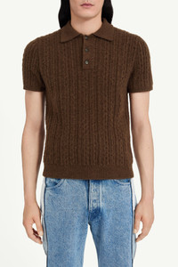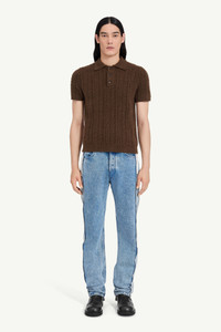 This short-sleeved polo is crafted from a wool-blend rib knit with soft volume and subtle texture. Defined by a buttoned placket and structured collar, it’s finished with the MM6 white stitch line at the back. Product Details Item ID SH2GL0006M13195143 Primary fabric: 35% Wool, 35% Polyacrylic, 28% Polyamide, 2% Elastane Short-sleeved ribbed polo shirt Classic collar Four-button placket Ribbed hem and cuffs White stitch line at the back Made in Italy Model is 188 cm tall and wears a size M.
