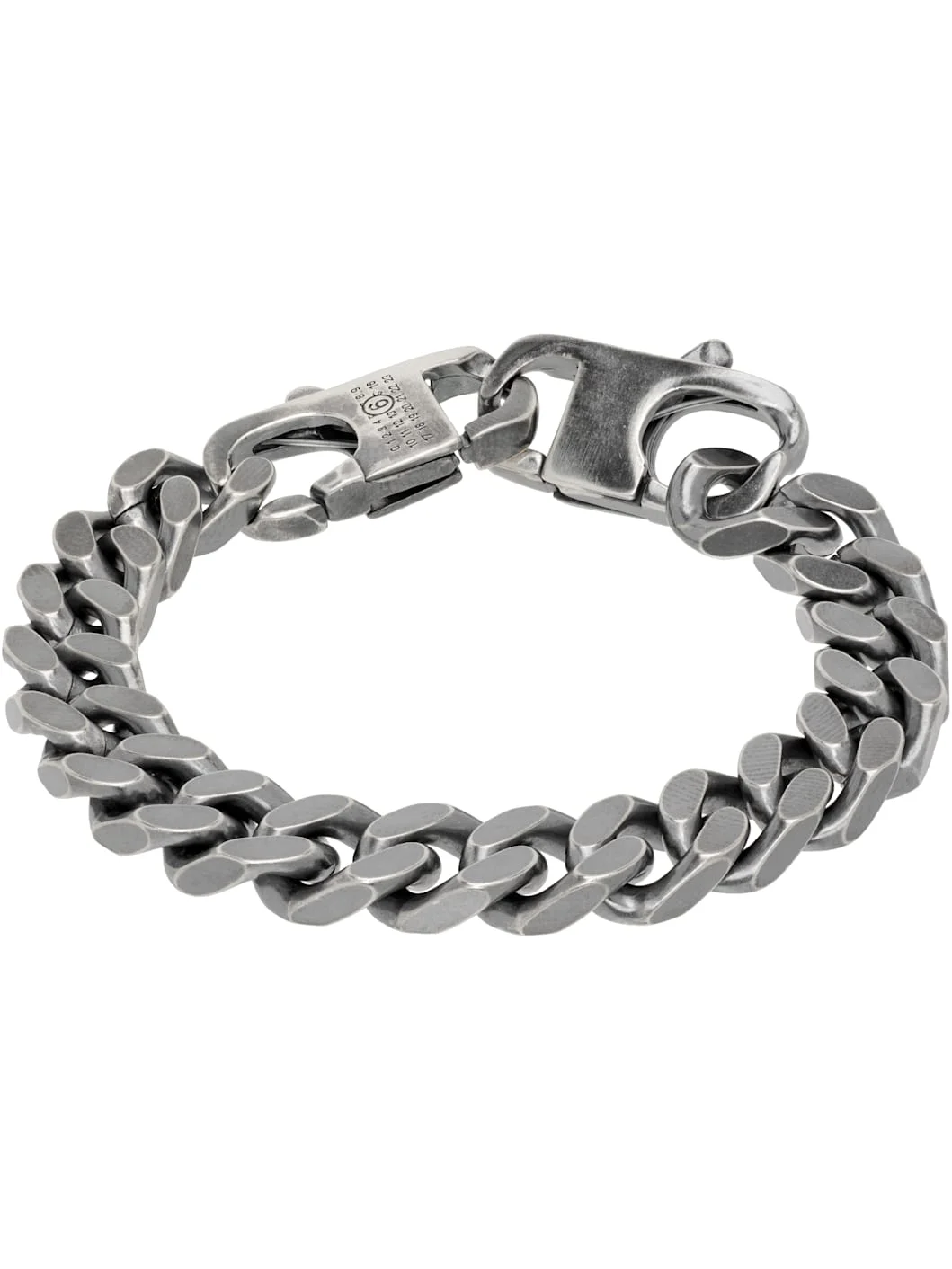 Curb-chain bracelet in antiqued silver-tone brass. Engraved logo and hallmarking at adjustable two-way lobster clasp. Supplier color: Brunito Brass. Made in Italy 261188M142007