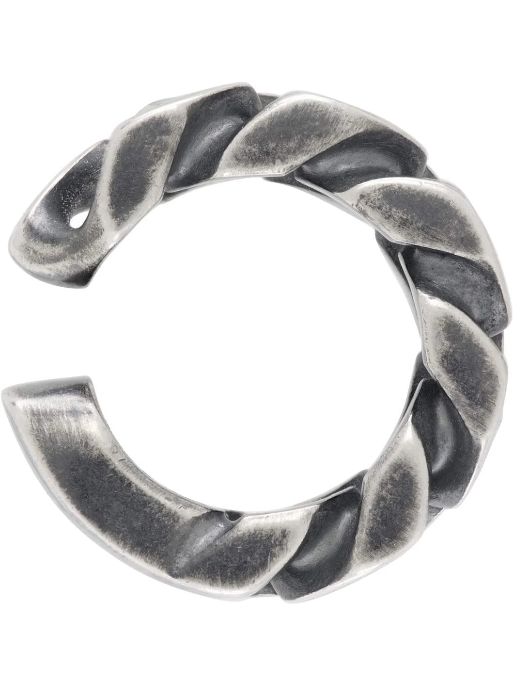 Single fixed curb chain ear cuff in antiqued silver-tone brass. · Logo engraved at end · D0.75" Supplier color: Argento brunito Brass. Made in Italy 252188M144006