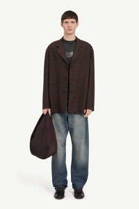 This checked blazer takes a softened approach to tailoring. Designed with relaxed proportions and minimal structure, it gently reshapes the codes of a classic piece. Oversized patch pockets offer a practical contrast to the refined pattern, while the white stitch line at the back signals the Maison’s deconstructive approach. Product Details Item ID SH0BN0014M35475001F Primary Fabric: 53% Polyester 43% Virgin Wool 4% Elastane-Spandex Lining: 100% Viscose-Rayon Single-breasted blazer in a wool blend All-over micro check pattern Notched lapels and button front Dropped shoulders Deep patch pockets White stitch line at the back Made in Italy Model is 190 cm tall and wears a size 48.